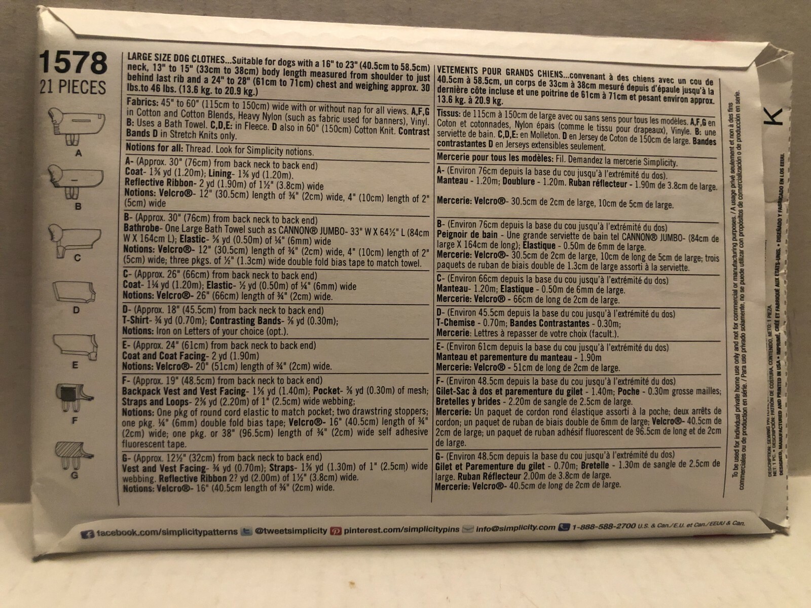 Simplicity 1578 Large Size Dog Clothes Sewing Patterns My Sewing Box